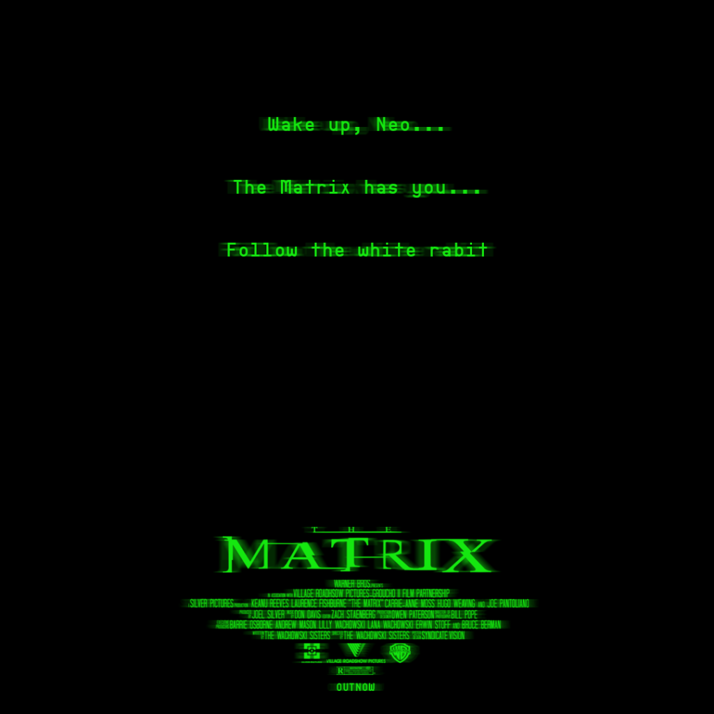The Matrix movie was the first movie I saw that I remember being really into the CGI and wanting to know more back in 2002. This scene that happens almost at the start, has become one of my favourites; that being said I wanted to turn it into a movie poster, while using the line as the focal point for a teaser poster! What was your favourite part?